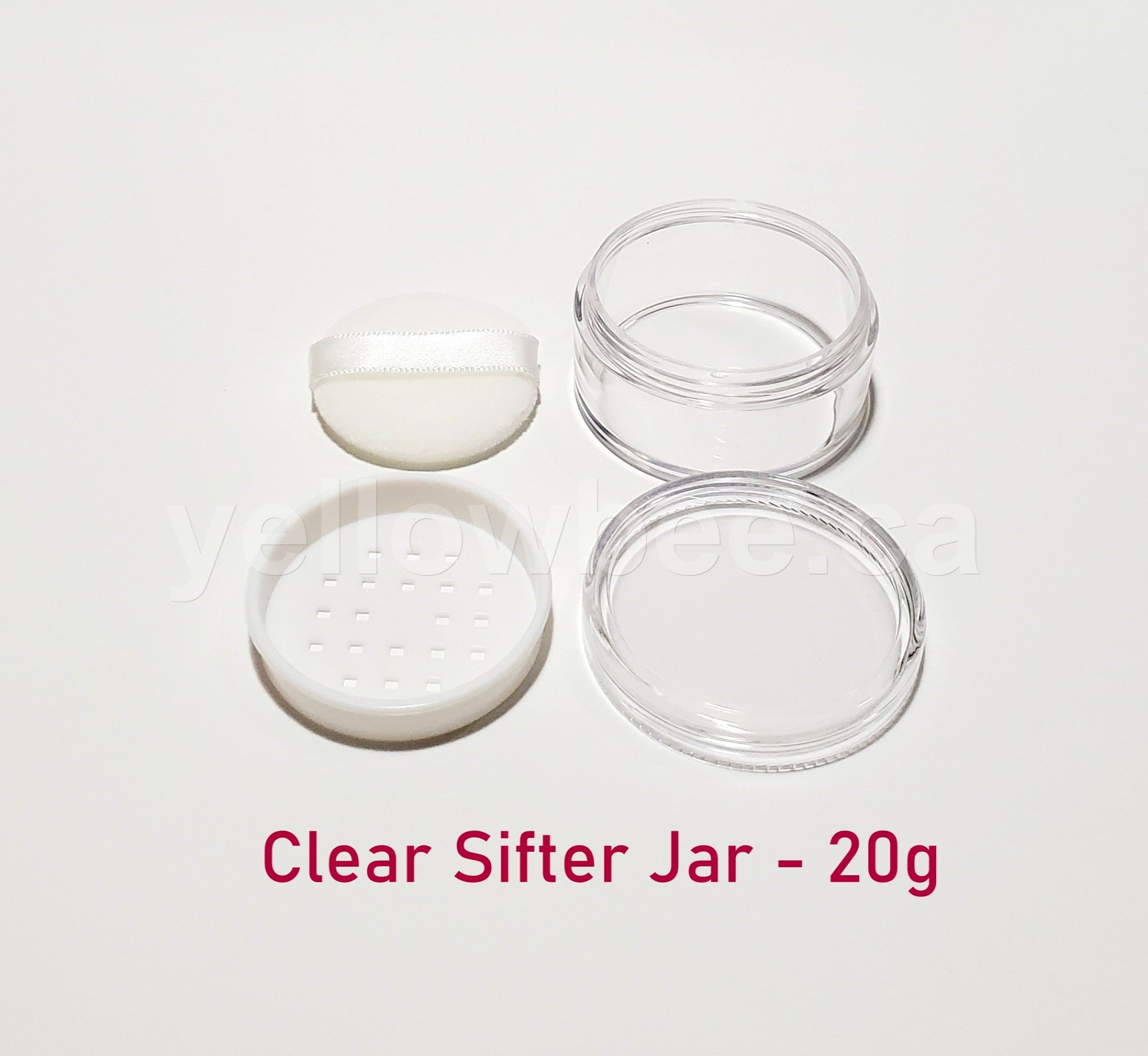 Our 20g All Clear Sifter Jar comes with Puff Pad. Suitable for loose powder and foundation powder.