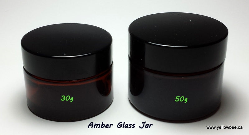 Amber glass jar with black lid. It's suitable for all kinds of creams and salves, especially those with essential oil.