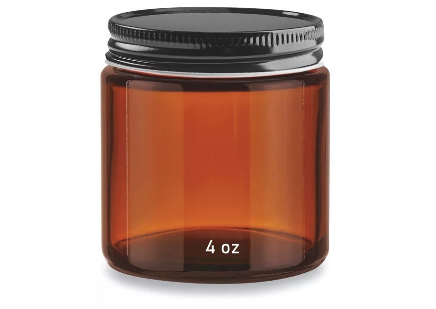 Amber Straight-Sided Glass Jars - 4 oz (Black Metal Lid) - 24pcs