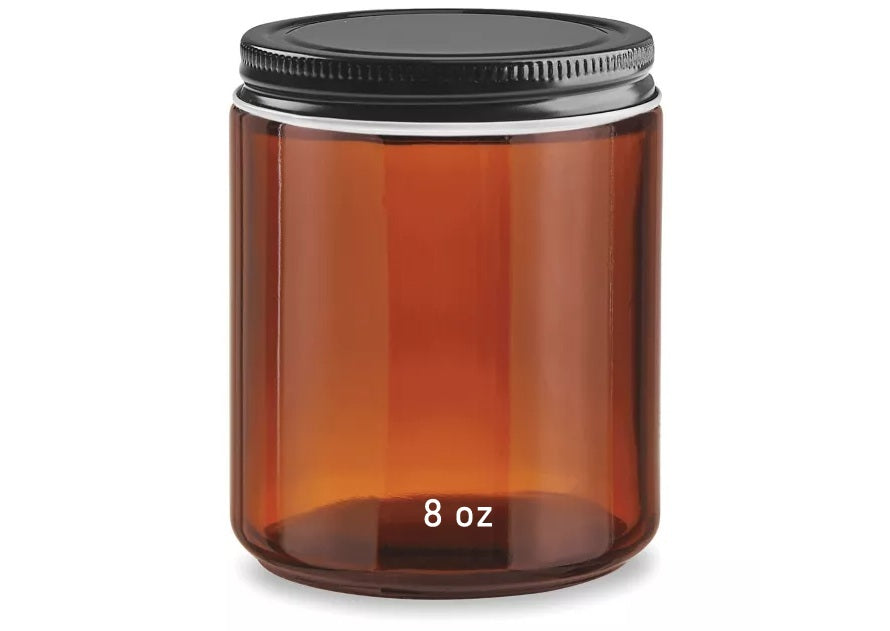 Amber Straight-Sided Glass Jars - 8 oz (Black Metal Lid) - 24pcs