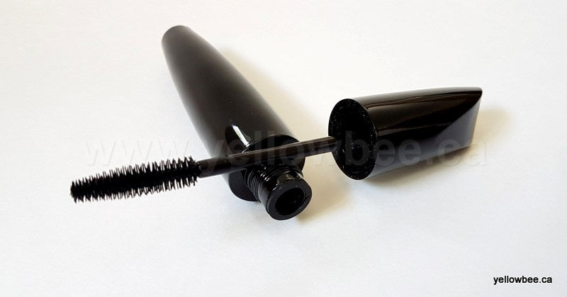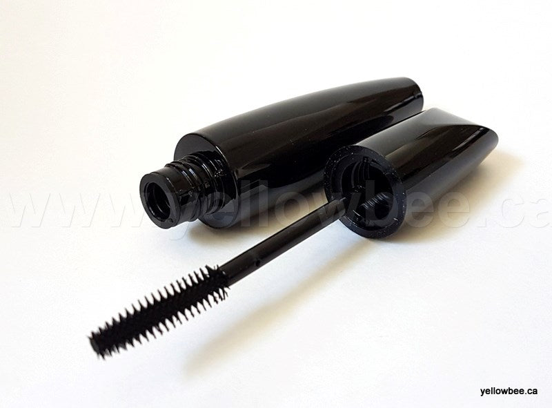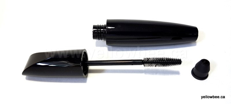 This elegant all-black shiny surface mascara tube / bottle set comes with mascara wand and a reducer to prevent spill.