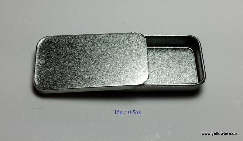 This 15g / 0.5pz Square Metal Tin comes with slide top. It is good for lip balm, salves, balms and other products.
